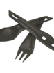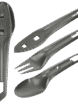 Ein Besteckset für das Camping. Das Set beinhaltet ein Messer, eine Gabel und einen Löffel. Das Messer im Set dient auch als Griffverlängerung für Löffel und Gabel, was das Umrühren von Campingnahrung in einem Topf oder Beutel sehr praktisch macht.