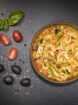 Nudeln (42%) (Weizenmehl, Wasser, Kurkuma), Paprika (11%), Karotten (11%), Zwiebeln (7,3%), Bohnenschoten (7,3%), Tomaten (7,3%), Frischkäse, Sahne, Knoblauch, Oliven, Basilikum, Petersilie, Salz, Gewürze. Aufgrund der Produktionslinie kann das Produkt Spuren von Sellerie und Senf enthalten.