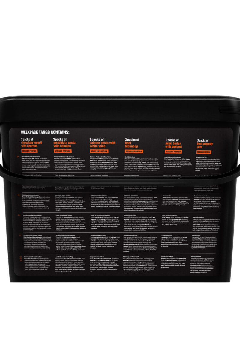 Ob Sie sich in die Wildnis begeben oder sich auf unvorhergesehene Ereignisse vorbereiten, Weekpack Tango garantiert Ihnen schmackhafte, nährstoffreiche Mahlzeiten für eine ganze Woche – jederzeit und überall.